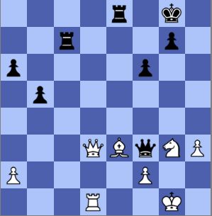 Der Einschlag 49…Txe3 gewinnt in allen Varianten mindestens die Qualität und lässt Weiß mit einem Scherbenhaufen zurück. Die Partie endet wenig später mit Matt.