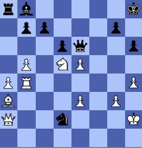 Nach 31.Sxh5! Df8 32.Dh7+ Ke8 33.Sf6+! dauerte die Partie nicht mehr lange: 1:1!