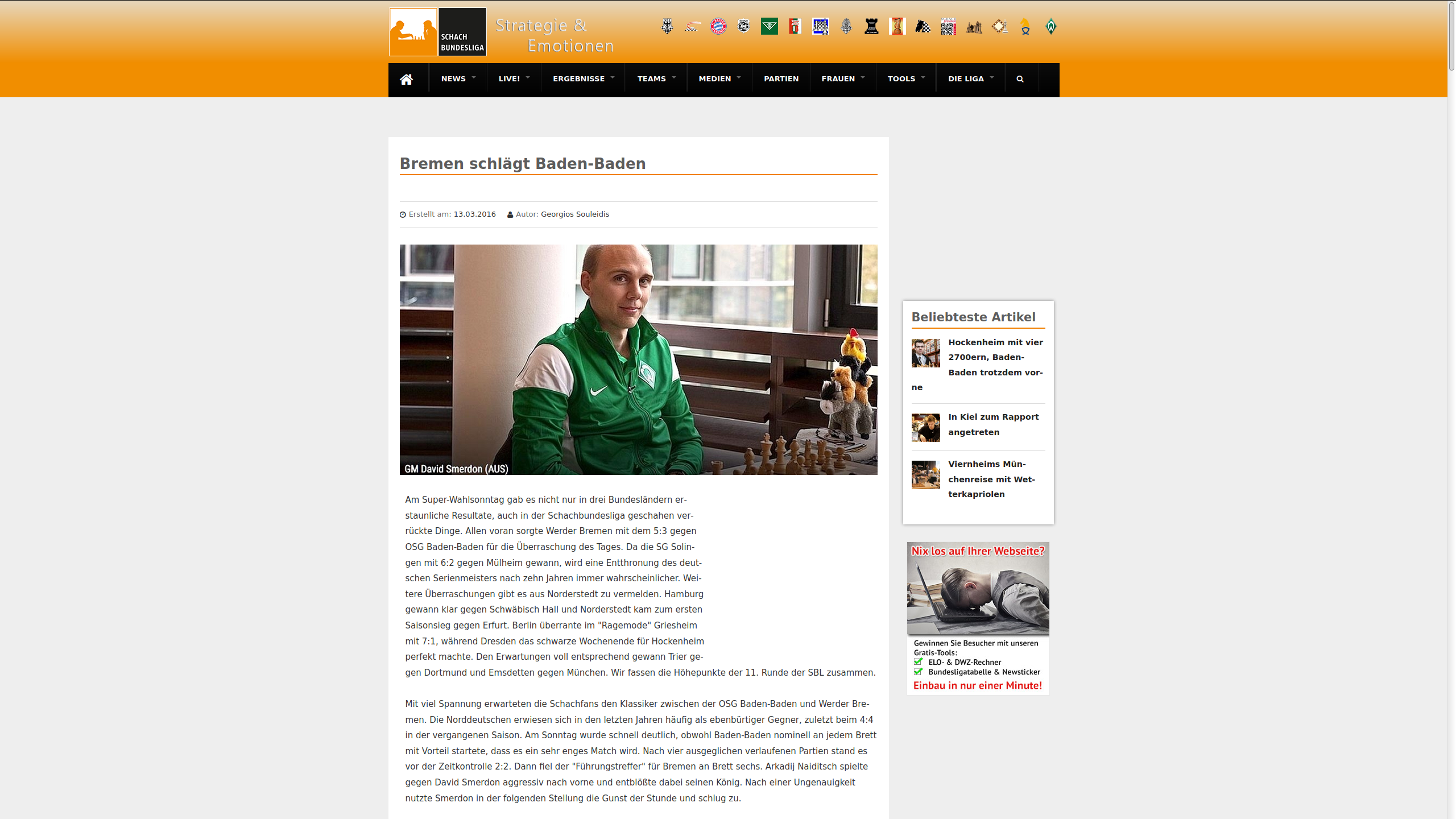 Beim Herumstöbern im weltweiten Internet stolperten wir soeben über einen etwas älteren Artikel, bei dem es – große Überraschung! – um Schach geht. Und um Werder! Und um die OSG Baden-Baden – was für ein Zufall, denn just am kommenden Wochenende kommt Baden-Baden ja vorbei im Clubraum Nord des SVW.