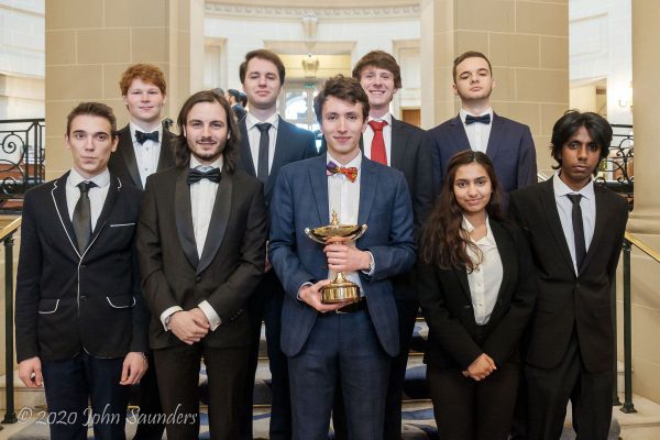 John Saunders reports: The guest of honour, Iranian arbiter Shohreh Bayat, was invited to toss a coin on behalf of the two captains at the starting ceremony. Daniel Abbas, as captain of the Oxford team which had won the previous year, had the privilege of calling heads or tails whilst the coin was in the air. It came down the wrong way for him and the Cambridge non-playing captain Gwilym Price duly chose White on the odd boards. This ultimately proved a most felicitous decision and, despite the Cambridge captain having no further part in proceedings until the time came for him to be presented with the Margaret Pugh Trophy, it can perhaps be said with hindsight that he made the most decisive move of the day.