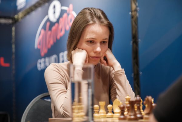 Alina Kashlinkskaya erlebt ein Alptraum-Turnier. Zum dritten Mal in fünf Partien ließ sie einen Gewinnvorteil ungenutzt und verlor. Zunächst schien es, als würde ihre Gegnerin Elisabeth Paehtz schlecht träumen, da sie in einer QGD-Tarrasch-Verteidigung den verhängnisvollen Zug 9…Nfd7 spielte und ihrer Gegnerin eine Kombination erlaubte, die zu einem großen Plus führte. Elisabeth war nicht in der Lage, eine Festung zu errichten, und ihre Türme konnten sich nicht verbinden, so dass die findige deutsche Spielerin den Plan fasste, ihren eingeschlossenen Turm über die h-Linie zu entwickeln. Spätere Analysen ergaben, dass dieser Plan nicht erfolgreich sein sollte, aber gegenseitige Zeitnot führte zu einer chaotischen Stellung, in der Elisabeth allmählich die Oberhand gewann. Bei der Zeitkontrolle stand die arme Alina vor einem Stellungswrack und einem Materialdefizit. Nachdem einige Paarungsversuche abgeblitzt waren, musste sie aufgeben. Aber alle Anerkennung gebührt Elisabeth, die, nicht zum ersten Mal in diesem Turnier, ihr Glück herausforderte und ihren Einfallsreichtum zeigte.