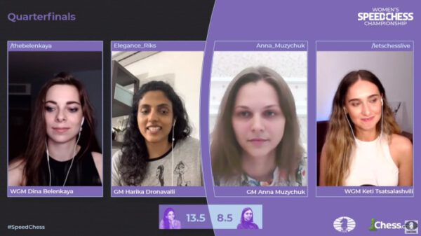 In der zweiten Viertelfinalpartie des Tages besiegte Harika Dronavalli Anna Muzychuk mit 13½:8½ und sicherte sich den dritten Platz im Halbfinale der FIDE Chess.com Schnellschachmeisterschaft der Frauen.