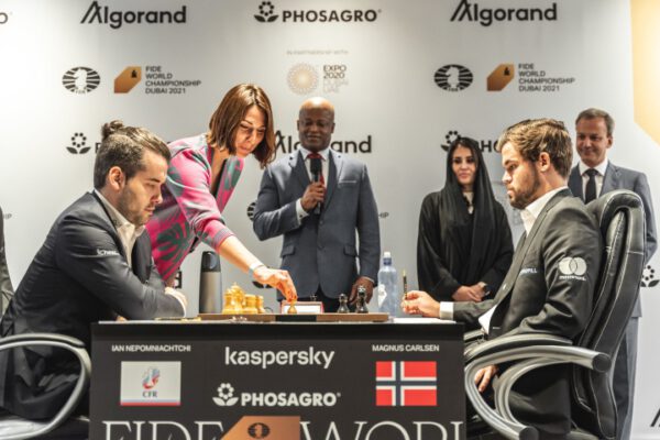 Während wir uns auf die Weltmeisterschaft konzentrieren, dürfen wir ihren Rahmen nicht vergessen. Die Dubai Expo 2020 ist eine Weltausstellung, ein spektakuläres Ereignis mit dem Slogan „Connecting Minds, Creating the Future“, was eine einfache Verbindung zum Weltmeisterschaftskampf herstellt. Das Schachspiel, insbesondere sein erzieherischer Wert, spielt im spanischen Pavillon, in dem auch die Mannschaftsweltmeisterschaft der Schulen ausgetragen wird, eine Hauptrolle.
