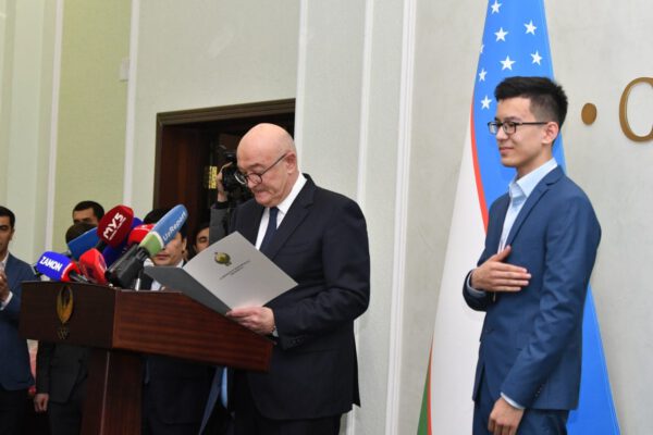 Zu Beginn der Veranstaltung verlas Abdujabbor Abduvokhidov den Erlass des Präsidenten über die Verleihung des Staatspreises „Mard Ugolon“ an Nodirbek Abdusattarov. Dem jüngsten