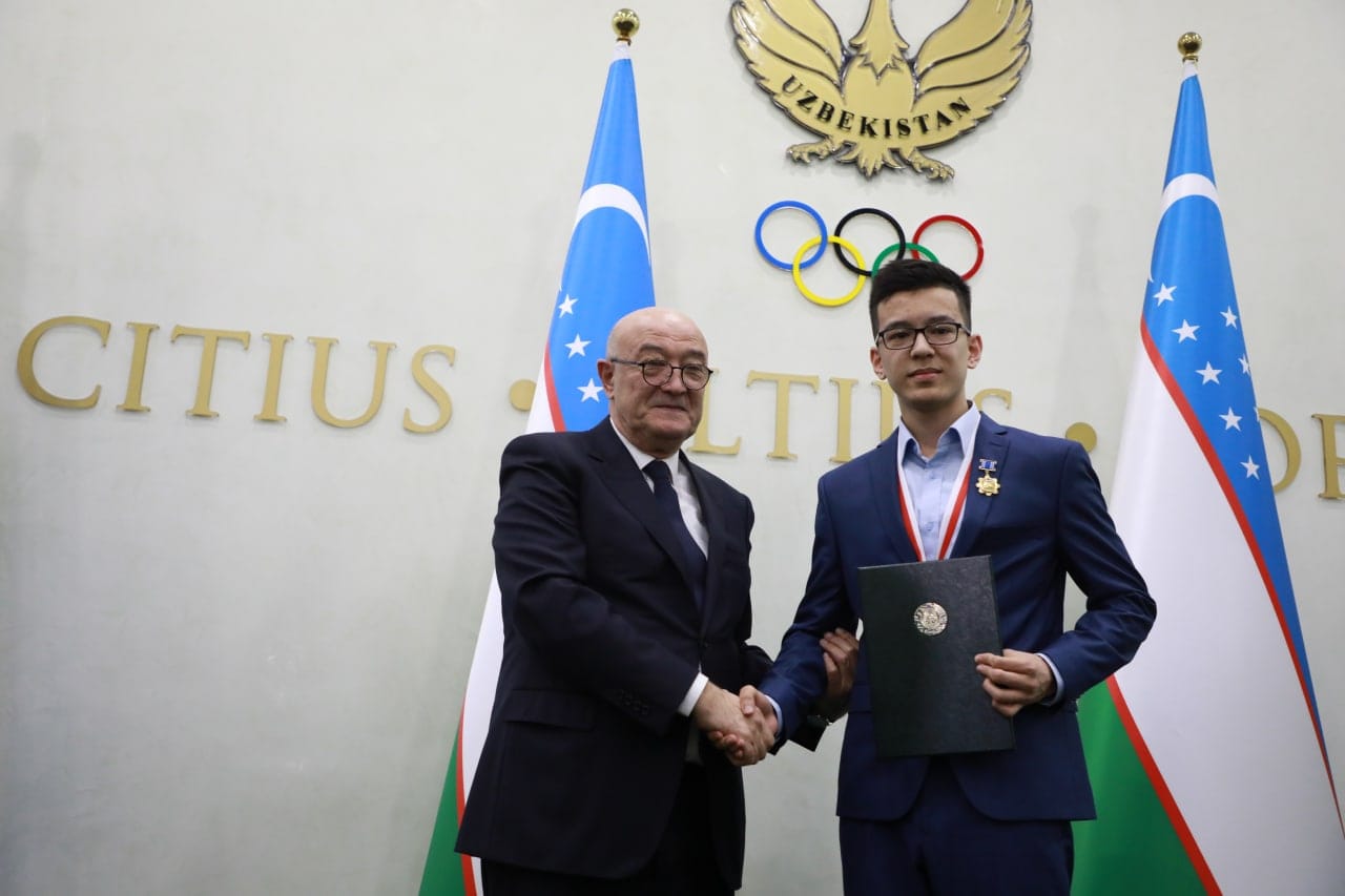 Heute fand im Nationalen Olympischen Komitee von Usbekistan die Preisverleihung für unseren jungen Helden statt. An der Veranstaltung nahmen der Berater des usbekischen Präsidenten,