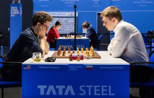 Jan-Krzysztof Duda behielt im Londoner System gegen Fabiano Caruana die Oberhand, fand aber kein subtiles 13.dxc5 mit der Idee von Qd1-a4-h4. Der polnische GM spielte sofort 13.Qa4, und der Amerikaner verhinderte das Schlimmste, indem er die zentralen Bauern tauschte. Weiß hatte immer noch eine angenehmere Stellung, aber Jan-Krzysztof ließ seinen König fälschlicherweise im Zentrum, und Fabiano ergriff allmählich die Initiative, indem er seine Bauern am Königsflügel vorschob. Duda räumte seinen König etwas verspätet an den Damenflügel und war durch Caruanas Ungenauigkeiten dem Ausgleich sehr nahe, aber eine Fehlkalkulation direkt nach der Zeitkontrolle machte seine Hoffnungen auf ein Remis zunichte. Schwarz kam mit der Dame und einem Mehrbauern gegen Turm und Springer heraus und konnte seinen Materialvorteil nahtlos umsetzen.
