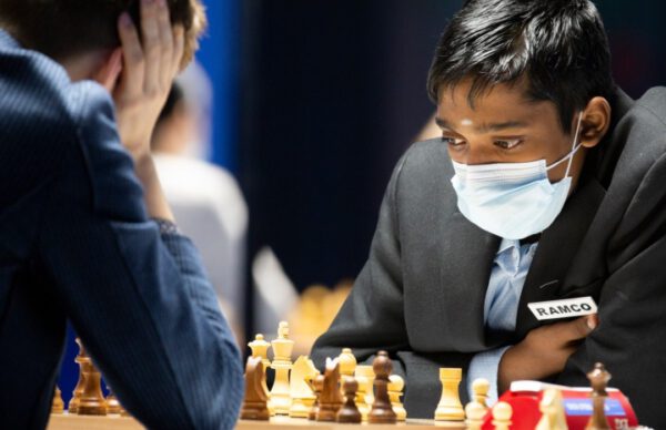 Rameshbabu Praggnanandhaa und Andrey Esipenko lieferten sich einen Kampf im Saemischen System des Nimtzo-Indischen. Nachdem Andrey ein paar zögerliche Züge gemacht hatte, gruppierte der indische GM seine Figuren um, opferte einen Bauern und bekam eine gefährliche Initiative im Zentrum und am Königsflügel. Um den Druck zu mindern, gab der russische GM einen Abtausch auf, fand sich aber in einer hoffnungslosen Stellung wieder. Rameshbabu hätte die Partie schnell beenden können, wenn er die Damen auf dem Brett behalten hätte, aber er tauschte die stärksten Figuren ab und erlaubte Andrey, eine Art Festung aufzubauen. Weiß musste noch den richtigen Plan zum Durchbrechen finden, aber Esipenko zerlegte die gesamte Konstruktion mit 58…Be6? und gab sofort auf.