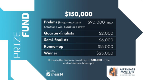 Insgesamt ist die Meltwater Champions Chess Tour – das reichste und prestigeträchtigste Event im Online-Schach – mit einem Rekordpreisgeld von 1,6 Millionen Dollar dotiert.