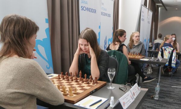 Das German Masters der Frauen 2022 in Darmstadt hat begonnen! In diesem Jahr außerhalb des Schachgipfels ausgetragen, um eine Terminkollision mit der Europameisterschaft der Frauen zu vermeiden, zeigten zehn der besten deutschen Spielerinnen absolutes Kampfschach: Bei fünf Partien gab es kein einziges Remis, jede Partie fand eine Siegerin! Damit knüpfen die Spielerinnen nahtlos an die entscheidungsfreudigen und spannungsgeladenen Partien der German Masters der Frauen aus den vergangenen Jahren an. DSB-Sportdirektor Kevin Högy ist vor Ort, um für uns von der ersten Runde zu berichten. (Fotos: Oliver Koeller)