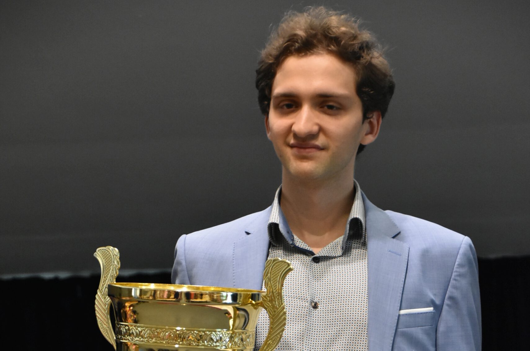 Foto: Alexander Donchenko mit dem Wanderpokal. Einen etwas kleineren durfte er mit nach Hause nehmen.