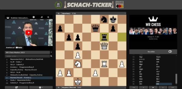 Jan-Krzysztof Duda schien gegen Ian Nepomniachtchis russische Verteidigung eine gewisse Initiative herausgespielt zu haben, doch fand Schwarz ausreichend Gegenspiel, um die Angelegenheit verflachen zu lassen. Ähnlich sah es zwischen Vincent Keymer und Levon Aronian aus. Was anfangs wirkte, wie ein bedrohlich heraufziehender Königsangriff, reichte bei weitem nicht aus, um die schwarze Bastion zu erschüttern.