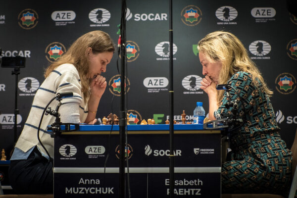 Elisabeth Pähtz ist heute im Viertelfinale des FIDEWorldCup leider ausgeschieden. Sie lieferte sich gegen Anna Muzychuk ein wildes, umkämpftes und unfassbar unterhaltsames Tie-Break-Match, das sich über sechs Partien zog. Am Ende im Blitz-Tie-Break hat es aber nicht ganz gereicht. Ihre Leistung ist historisch, sie hat die Weltmeisterin besiegt und war die allererste Deutsche in einem Weltcup-Viertelfinale überhaupt.