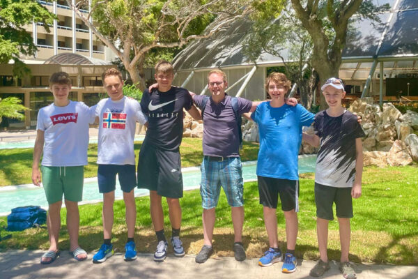 Die Anreise der österreichischen Mannschaft, bestehend aus FM Alexander Gschiel, FM Laurenz Borrmann, FM Lukas Dotzer, FM Peter Balint und FM Robert Ernst, unterstützt von Bundesjugendtrainer IM Georg Fröwis, zur Team-EM U-18 verlief reibungslos. Wir kamen voller Vorfreude und Energie am Abend des 20.6. auf Rhodos an und wohnten im Hotel „Rhodos Palace“, in dem sich auch der Spielsaal befand. Das Meer, in dem einige auch geschwommen sind, lag in unmittelbarer Nähe zum Hotel.