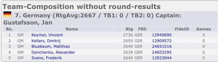 Es wird sich in Grenzen halten. Die Mannschaft folgt Jan Gustafsson bedingungslos – auch, weil er an jeden einzelnen Spieler glaubt. Wie sagt er so schön: Wenn alle “über der Elo-Erwartung“ spielen würden, was möglich sei, dann sei sehr viel drin. Vielleicht sogar eine Medaille. (mw)