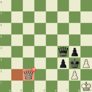 Die längste Partie spielte Ruben Gideon Köllner (Beitragsbild). Lange sah es nach einem Remis aus, aber in der folgenden Stellung nutzte er den Fehler seines Gegners aus. 71. Dc3! wäre hier für Weiß der einzige korrekte Zug gewesen.