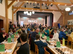 Turnierdirektor Sven Noppes konnte insgesamt 227 Teilnehmer begrüßen. Im A-Open traten 97 Spieler an, im B-Open 85 und im C-Open 45. Der Blick in den Turniersaal sah so aus: